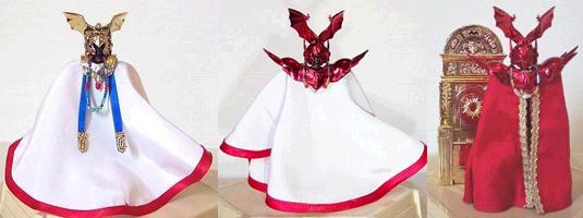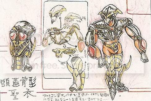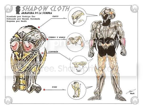 texto en japonés acerca de él? La Shadow Cloth aparece en el primer video juego de Saint Seiya para NES, como la armadura sombría del patriarca. Esta armadura fue inventada por un fan llamado Toshiya Ono, que ganó un concurso de diseño organizado por Shueisha.
