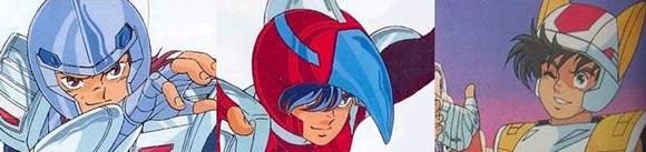 7. Los caballeros de acero Pez Espada - Tucán - Zorro CABALLEROS DE ACERO, STEEL SAINTS: Sólo existen en el anime, fueron creados por Bandai con un claro objetivo comercial, produciendo reproducciones de estos en modelos reducidos y en cantidades limitadas. Evidentemente son personajes de bulto, invitados y venidos de otro anime, es difícil entender como encajan aquí sino sólo a efectos comerciales (otra vez los juguetes de Bandai, más personajes = más figuras que vender), como en Japón gustan las cosas mecánicas, y siguiendo la tradición de los anime robots Mazinger, Great Mazinger, Grendizer, Getter Robot, Power Rangers etc... fácilmente se deduce la fuente de inspiración de los caballeros de acero.