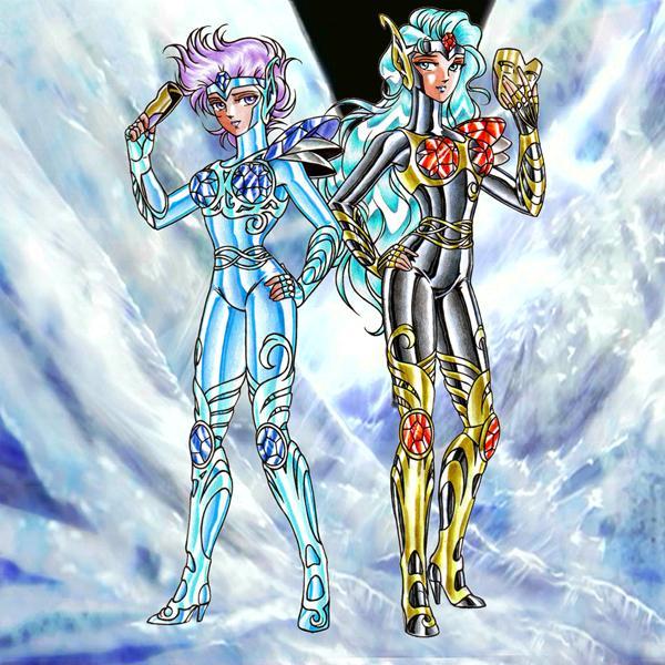 de esos animales. Las armaduras de acero rotundamente NO son armaduras de Atenea ya que está demostrado que no han sido creadas por los muvianos, por coherencia narrativa deben existir otras 3 armaduras “celestes” aun no vistas y vestidas por verdaderos santos de Atenea representando esas 3 constelaciones. Parece que los dibujantes simplemente se inspiraron en constelaciones y escogieron esas tres sin pensar que no podrían integrar a estos 3 personajes con el resto de caballeros imaginados por Kurumada. Seguramente Toei, en su intento por descubrir cuales serían las cuatro armaduras misteriosas, quiso desvelar ese misterio con esta y muchas creaciones más, imaginamos que esa es la realidad. Notemos que estas armaduras representan a los elementos, tomar los atributos de la naturaleza es la forma mas simple, fácil y cómoda de inventar personajes.