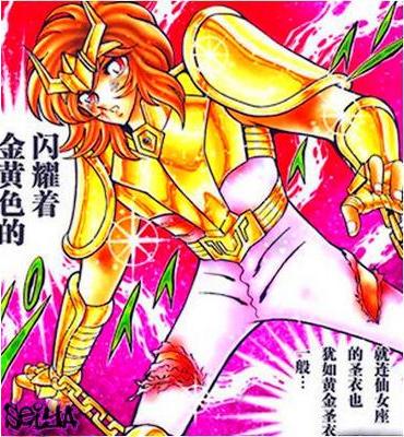 de Jerôme Alquie (Francia) Este estado de la armadura no es permanente, sino que deja este estado una vez que el cosmos del caballero baja a niveles más normales, cuando termina su combate, la armadura vuelve a la forma V2 (y no más “V2-oro”). En efecto, es la verdadera naturaleza de la armadura que vuelve a tomar su forma original: no pueden existir más de 12 armaduras de oro que correspondan a las 12 constelaciones de la eclíptica, y cuando la armadura de bronce evoluciona tomando las texturas de las de oro sólo es por un período específico y temporal.