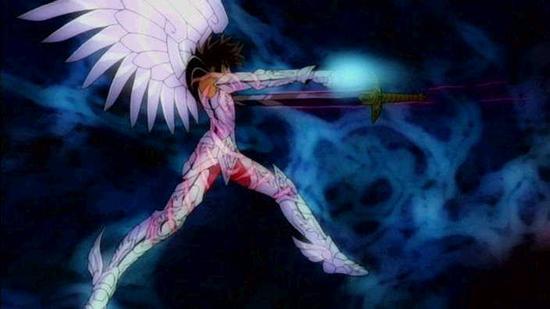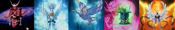 Colorizaciones - Fanarts de Raúl Estebanez (España) Durante todos los combates en el Hades, los santos de bronce llevan sus armaduras V3, y en el Elysion, en los combates contra Thanatos, Hypnos y Hades, las armaduras, bajo la influencia de los cosmos de los caballeros que se intensifican más y más, se auto-repararan al instante y toman una forma absolutamente sublime: Se convierten en armaduras divinas (llamaremos a esta forma “V4” o God Cloths), muy populares entre los fans... Los Bronze Cloths de Pegaso, Cisne y Fénix sí tienen alas. En la saga de Hades se ven las alas originales de sus armaduras. A pesar de la sorpresa de sus portadores, las alas de los cloths no son un secreto, la reacción de los protagonistas se debe a su desconocimiento, en los diagramas de Kurumada se pudieron ver dibujadas las alas... sólo que esas piezas se esconden al vestir el Cloth. Seiya menciona también que el ya sabía que el Pegasus Cloth tenía alas pero no sabía que tenían una función. Seguramente sólo funcionan para planear y controlar un salto muy alto hasta que alcanzan el estado pre-God Cloth, antes de eso, probablemente no son mas que ornamentos...
