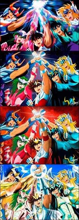 Bronze Cloths (新生青銅聖衣) En el anime, las cosas se hacen de tal manera que los cinco Bronze Saints, Seiya y sus protagonistas, usen estos Cloths a partir del capítulo "Asgard". El diseño se basa en el modelo de los New Cloths que entraron en escena en el capítulo "Las Doce Casas" de la obra original. Con la popularidad generada de los fans y su alto diseño, se decidió que fueran los primeros Cloths en ser comercializados al principio de la gama Saint Cloth Myth. Los Bronze Cloths fueron regenerados por Mu al comienzo del capítulo "Asgard" del anime. Al recibir la sangre de los Gold Saints que sobrevivieron durante el capítulo "Las Doce Casas" y debido a que fueron devueltos a la vida, estos Cloths brillan en oro con el aumento de Cosmos de su portador, y exhiben capacidades de defensa que incluso rivalizan con las de los Gold Cloths. Las capacidades de ataque no se han fortalecido, ya que la capacidad de ataque de un Saint equivale a su nivel del Cosmos, pero con su condición brillante en oro, estos Cloths elevaron sus capacidades de ataque de forma natural. Los Gold Saints que ofrecieron su sangre para reparar cada uno de los Bronze Cloths fueron Aiolia para Pegasus, Mu para Dragón, Milo para Cisne, Aldebarán para Andrómeda y Shaka para Fénix. Estos New Cloths fueron usados para enfrentar a los God Warriors, los protagonistas los usaran a partir de entonces durante la batalla contra Poseidón. Regenerados por la sangre de los Gold Saints, durante sus batallas contra los Marina Generals, Seiya, Shun y Hyōga afirman que sus Cloths están extremadamente cerca de los Gold Cloths. Enfrentado a Seiya y Baian constata que los New Cloths tienen capacidades defensivas mejoradas, mientras que más tarde Shiryū, frente a Krishna, agrega que el alma de los Gold Saints reside en sus New Cloths. Gold