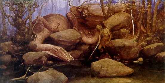 Sigurd / Siegfried La Völsunga Saga (Versión escandinava): Sigurd es educado por Reginn (un herrero mago), Reginn forja la espada Gram, que acompañará siempre a Sigurd. Reginn anima a Sigurdr a matar Fafnir el dragón (hermano de Reginn que se adueñó del tesoro de Andvari). Sigurd mata al dragón y entrega su corazon a Reginn, al hacerlo se lleva la sangre a los labios. Con este gesto logra comprender el lenguaje de los pájaros y los pájaros le advierten de la intención que tiene Regin de matarlo, por lo que empuña a Gram para matar a su forjador.
