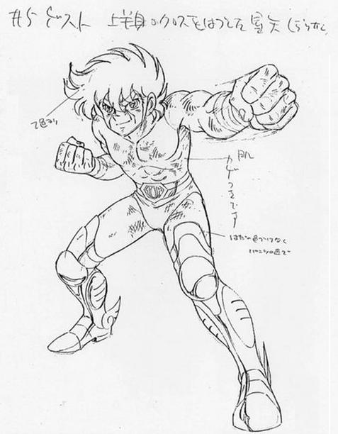 Por suerte, y aunque suene a crítica negativa, no se respetaron los diseños originales de su autor, puesto que su dibujo era un tanto… “peculiar”. Masami Kurumada tenía un estilo incluso ya arcaico para la época, y por suerte para los fans, los trazos para la animación fueron de Shingo Araki y Michi Himeno, quienes dieron vida a Seiya y sus amigos en la pantalla. Pero, evidentemente, no sólo un dibujo bonito hace buena una serie. Fueron la trama y las ideas originales de Kurumada las que propiciaron el éxito, y sumando eso a las manos de otros dibujantes y animadores, dieron con la gallina de las armaduras de oro ^^. De hecho, es muy curioso todo este proceso y la gran cantidad de autores que se han ido sumando posteriormente a la franquicia.