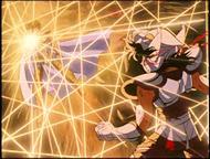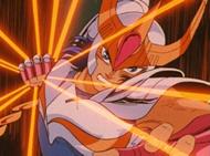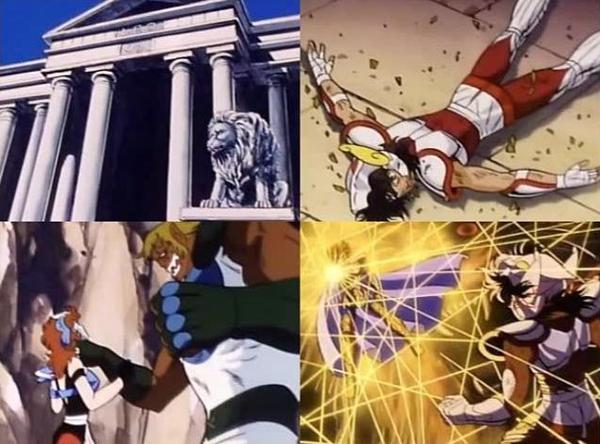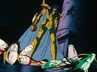 Capítulo 51. Nazé da ! Kiba o muita ôgon no shishi ("Pero por qué ?i ! El león de oro con los mordiscos afilados"--- ¿Por qué el León dorado trata de matar a Seiya?) En este episodio el apuesto Aiolia se luce con su armadura de oro de Leo. También podemos observar lo gracioso que puede ser un gigante como Jaki, o cuan delicada puede llegar a verse Marin de Águila.