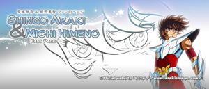 ARAKI y MICHI HIMENO Ambos nombres quizás no os digan gran cosa, pero seguro que cuando erais niños o adolescentes en los años 80 y 90, vuestra memoria estaba, sin duda, poblada por sus dibujos. Hay que decir que estos dos talentosos diseñadores de personajes (character designers / diseñadores gráficos) trabajaron en los más grandes dibujos animados de nuestra infancia, especialmente en Saint Seiya. El nombre de Shingo Araki es ahora inseparable del de Michi Himeno, su histórica colaboración desde 1973, el año de su asociación artística que perdura hasta hoy con las producciones de "Araki Production".