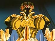 45. Kyôfu ! Ijigen e no hyôryû. Parece que en los duelos entre los más poderosos, también Araki pone su grano de arena. Este es un magnífico episodio en la casa de Géminis, donde vemos lo específico y detallado del trazo del maestro Araki con las cadenas de Shun de Andrómeda, y el casco de oro de la armadura de Géminis.