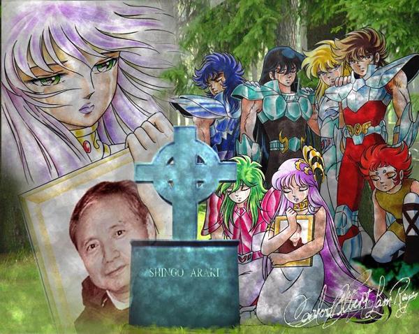 Mientras Kurumada es responsable del manga, Shingo Araki, junto a su talentosa colaboradora Michi Himeno, son una de las razones principales del éxito inmenso de la serie animada de Saint Seiya, en la que Araki trabajó a la vez como diseñador de personajes y director de la animación.