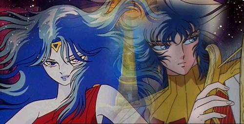 Moeagaré ! Ai no Cosmo Este episodio es un verdadero icono, al menos en la parte sentimental. Existe hasta un video musical inspirado en este capítulo. El video de Lullaby. La escena onírica de Saori y Seiya que saltan por un barranco durante la noche y al amanecer aparecen estirados en un campo con muchas flores es muy recordada, sobre todo porque fue obra de Araki...