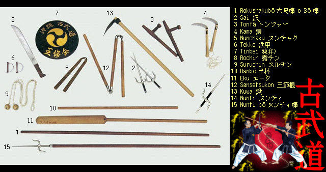el caso de los tongfas, los nunchakus y los bastones de tres-secciones,