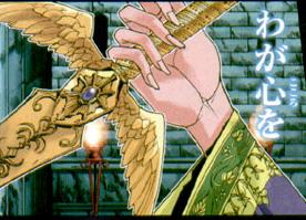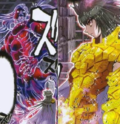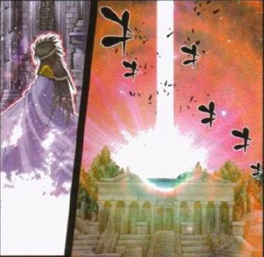 Desgraciadamente la Cloth de Géminis esta vacia y como consecuencia del ataque de Shura, esta acaba desperdigada en piezas por el suelo. Shura, aun más sorprendido, se da la vuelta para observar el templo con la esperanza de encontrar el más mínimo indicio sobre el lugar donde se esconde su adversario, y cuando finalemente se gira hacia el Gran Pontífice, este le inflinge inmediatamente un ataque que el Santo dorado de Capricornio no puede esquivar.