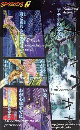EPISODIO G (la pre-secuela) / 2003-2005 El Episodio G es nuestra última esperanza, los fans confiamos encontrar en este reciente manga muchas de las respuestas que aun quedan a nuestras preguntas sobre Saga-Arles y el asesinato de Shion. Pero no es oro todo lo que reluce, la historia sobre la vida de los jóvenes caballeros de oro, como es lógico, sigue el esquema de la versión manga de Kurumada y da un vuelco total a ciertos acontecimientos relevantes del Anime.