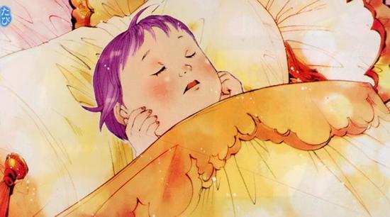 Entra en una habitación, en la cual hay un lecho maravillosamente decorado mostrando el rango elevado de la persona que reposa en él. Y mientras se acerca al niño, que más quiere en el mundo, el hombre le dedica sus muestras de admiración y amor.