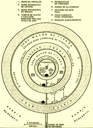 y el tercero de oricalco. Los palacios de la ciudadela estaban construidos