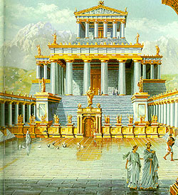 de un estadio de longitud y medio de ancho. El exterior del templo estaba