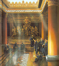 En el templo estaban las estatuas en oro del dios en un carro con seis