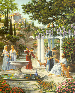 a muchos dioses, jardines y lugares para hacer ejercicio. En el mayor