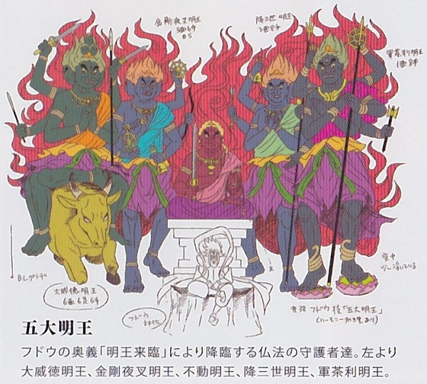 rodeados de llamas. Los cinco Reyes Celestiales, que son los cinco Myo-o