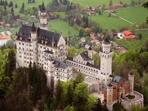 El castillo de cuentos de hadas de Neuschwanstein comenzó a ser construido en 1869 por el rey Luis II de Baviera. Más "medieval" que cualquier otro edificio de la Edad Media, Neuschwanstein representa la realización del sueño de un hombre. El sueño comenzó en la infancia de Luis. A la edad de seis años disfrutaba jugando con ladrillos, con los que, según su abuelo Luis I, construía “edificios sorprendentemente bien hechos". También le gustaba lucir y vestirse a la perfección. Durante los meses de verano, la familia de Luis – el padre, la madre, el propio Luis y Otto, el hermano más joven – acostumbraban a ir a Hohenschwangau, la morada ancestral de los señores Schwangau, que su padre, el rey Maximiliano II, había comprado en 1833. Cuando Maximiliano decidió "restaurar" el castillo, su espíritu romántico se reflejó en la elección de un escenógrafo, en vez de un arquitecto, para diseñar el proyecto. A él le gustaban las leyendas antiguas y mandó pintar las paredes con escenas tomadas de las historias de los héroes medievales, especialmente Lohengrin, el caballero del Cisne, que, según la tradición, había habitado en ese mismo castillo.. Neuchwanstein fue el primer palacio que mandó a construir, en una época en que los castillos y las fortalezas ya no eran necesarios desde el punto de vista estratégico. Nació como una pura fantasía romántica, una composición de torres y muros que pretendía armonizarse con las montañas y los lagos. Capricho excesivo para algunos, homenaje a la imaginación para otros, combina eclécticamente varios estilos arquitectónicos y su interior alberga múltiples piezas de artesanía no menos fantásticas. Su diseño no es funcional, sino estético, siendo en buena medida el producto de la mente de un escenógrafo teatral. Por dentro, además de continuas referencias a leyendas y personajes medievales como Tristán e Isolda o Fernando el Católico, contiene una completa red de luz eléctrica, el primer teléfono móvil de la historia (con una cobertura de seis metros), una cocina que aprovechaba el calor siguiendo reglas elaboradas por Leonardo da Vinci y vistas a los paisajes a los Alpes, incluyendo una cascada que el monarca podía contemplar desde su habitación. Es el edificio más fotografiado en Alemania y uno de los destinos turísticos más populares en ese país.