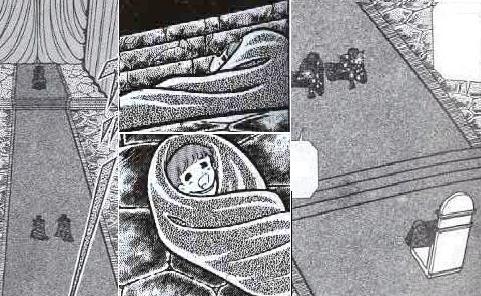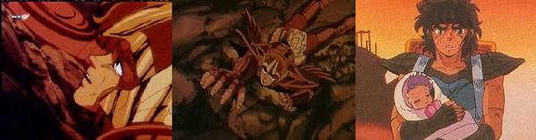 Para perdonar la vida de su amigo así como la de Atenea, Shura decide cortar las piernas del caballero de Sagitario usando Excalibur. Pero, para su gran sorpresa, Aiolos se lanza sobre él ! Profundos cortes se cruzan inmediatemente en su cuerpo y una borbotones de sangre salpican el rostro de Shura, que pierde de vista al Santo de Sagitario. El traidor ha huído en la noche, mortalmente herido al menos, con el bebe de Atenea en sus brazos, mientras que Shura se ha quedado sorprendido por la actitud de indefensión de Aioros, que se dejó herir por Excalibur sin ejecutar ni un solo ataque contra sus agresores. Comentario: Lo que no sabemos (todavía) es como asumen los habitantes del Santuario y los gold saints la desaparición de la reencarnación de Atenea del recinto sagrado, pues Saga, a diferencia de lo que ocurre en Manga y Anime (donde el Patriarca Saga engaña a todos afirmando que Atenea reside en su templo y no quiere recibir visitas), no tiene porque negar el acceso a las dependencias exteriores de la diosa y ocultar su presencia en el recinto sagrado, ya que todo el mundo debe saber que ella no esta allí, ¿curioso verdad?. A no ser que nos lo aclaren más adelante claro esta...