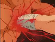 de morir a manos de Ikki, Hyoga le congela el brazo derecho. Shun
