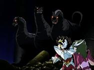 Gigas, el ministro del Pope, pide a Shaina, que designe a alguien que pueda recuperar el casco dorado. Shaina elige a Geist (espíritu en alemán) y sus Santos acuáticos quienes se encuentran exiliados en la Isla del Espectro. Estos Santos secuestran uno de los barcos petroleros de la Fundación Grad y exigen que los Santos lleven el casco dorado. Seiya acepta el desafío, pero luego de derrotar a sus enemigos, estos escapan gracias a la ilusión creada por Geist.