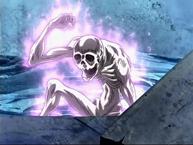 DEATH MASK, MASCARA MORTAL. デスマスク (Desu Masuku) Personaje, Saints, Caballero de oro del signo de Cáncer : “Máscara Mortuoria” o “Máscara Mortal”. Ver también Gold Saint Kaniza Cancer no Death Mask. Deathmask - Máscara mortal, caballero de Cáncer (Kaniza no Desumasuku) 蟹座のデスマスク (蟹座(キャンサー)のデスマスク - pron. jp. kyansa no desumasuku) es el guardián del cuarto templo del Zodíaco, el de Cáncer (巨蟹宮 - pron. jp. kyokaikyu), este Gold Saint colecciona los rostros de sus víctimas y es incontestablemente uno de los más crueles, moralmente indigno del rango que ocupa. Un personaje que cae simpático a muchos, malo, perverso, sádico. Máscara Mortal es simplemente la maldad pura y sincera que únicamente consigue satisfacción al sentir el sufrimiento perenne de sus enemigos. Máscara Mortal es un caballero malo, el único que lo es enteramente, pues el resto tienen circunstancias atenuantes, él no, es un ser despiadado y vil, representa, básicamente, lo malo de este signo. En lo más profundo de sus pensamientos impera la ambición de poder y la destrucción. Máscara Mortal es violento y sanguinario, simplemente la maldad pura y sincera que únicamente consigue satisfacción al sentir el sufrimiento perenne de sus enemigos. Este Caballero Dorado encerró las almas de sus enemigos en la casa de Cáncer, para infundir temor en sus futuros oponentes y así vanagloriarse de su gran poder. Sus trofeos son las caras de sus víctimas con las que decora el suelo, techo y muros interiores de su templo de Cancer, un pésimo gusto en decoración e interiorismo. DM saca su nombre de esta práctica inmunda, utilizará sus poderes que le permiten enviar a sus enemigos al reino de los muertos, a donde se presenta en persona para combatir a Shiryu. Ver ficha personal DEATH MESSENGER. デスメッセンジャー (Desu Messenjā) Técnica de Combate, Specter, Cube, Saga de Hades: “La Mensajera de la Muerte” o “El Aviso de Defunción”. Esta técnica se menciona en el Saint Seiya Taizen y en las fichas al final del volumen 28 de Saint Seiya. Se trata de una de las técnicas de caracter más siniestro jamás visto. Cube de Dullahan la utiliza por primera vez en Saint Seiya ~ The Lost Canvas. Cube muestra a una doncella o mujer decapitada con el pelo largo que sostiene en sus brazos su propia cabeza cortada y entona una melodía capaz de parar el corazón de su objetivo a medidad que la aparición se acerca. La melodía es el mensaje de la parálisis del corazón. Cuando ésta penetra el cuerpo, el corazón deja de latir. Esta técnica funciona incluso si la víctima se perfora los tímpanos. DEATH QUEEN INFERNO. デスクイーンインフェルノ (Desu Kuiin Inferuno): “El Infierno de Reina Muerte”. Jango envía un rastro de llamas a su oponente. Estas llamas, sin embargo, mo logran hacer el menor daño a Ikki. El Saint Seiya Taizen y el Cosmo Special indican que en realidad Jango da glopes cuya presión derrite por fricción las rocas que lo rodean, lo que crea lava. En el anime esta técnica es renombrada " Death Queen Tō Jigoku no Honoo" (デスクィーン島地獄の炎) y que parece estar constituida de llamas. El nombre original significa "Brasa infernal de la reina de la muerte" y el del anime significa “las llamas infernales de la Isla de Death Queen ". Clasificación del Cosmo Especial: Técnica de fuego.
