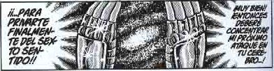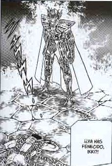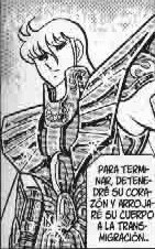 Entonces, el Tesoro del Cielo sólo da lugar a accionares extremos. Y así y todo, estuvieron siempre acompañados de la complicidad de su ejecutante. Ni siquiera podemos considerar a estos recursos, métodos que otorguen una victoria moral a pesar de lograr su cometido. Ya que estos, demuestran la incapacidad del oponente que la realiza, para conseguir la victoria por los métodos tradicionales de la batalla. En pocas palabras, en el caso de Ikki, el caballero renuncia a su vida y al sentido de la batalla misma por una causa más importante. Y en el caso de Los Darks, al honor de ser caballeros. Y para finalizar la explicación, sería bueno hacer memoria, y recordar que Ikki llegó a tomar por la espalda incluso al mismo Poseidón (con quien fracasó en el intento de llevárselo). Entonces, no sería razonable pensar que el Tesoro del Cielo le proporciona a Shaka la facultad de ser más intocable que un Dios Supremo. El efecto del Tesoro siempre estuvo en pie, hasta que Shaka e Ikki abandonaron la casa. De eso no hay duda; el momento es muy gráfico, tanto en MANGA como en ANIME, donde se muestra claramente como y cuando se rompe. ¿Sólo una energía semejante al Big Bang es capaz de deshacer el Tesoro? No. Esto es una mala interpretación que hacen algunos a partir de que la única escapatoria que tenían los darks era una Athena Exclamation. Primero, que desde el vamos, la atribución que se le da a la técnica de ser como el big bang es metafórica. El Tesoro del Cielo, a mi entender, se ajusta a las reglas comunes de la serie. No es la técnica la que define un combate, sino el nivel cósmico que se le adjunta. Por lo tanto, para escapar, el contrincante tendría que producir un nivel cósmico superior a la explosión proyectada por Shaka cuando este abre los ojos. Cuando Ikki logró armonizar su energía con la del Tesoro, pudo liberarse de su efecto. La técnica jamás fué empleada en su totalidad. Frente a Ikki no se hace efectivo el último paso, la detención del corazón. Esta acción final representa (en el caso de rivales con el 7mo sentido) aproximadamente cerca de un 50% de la técnica. Porque es el paso que asegura la muerte del rival inevitablemente. Y el cual, el 7mo sentido no puede solventar; ya que no es un sentido. Frente a Los Darks, Shaka retira 4 sentidos solamente. Quedando disponibles un 5to, el 6to y el ritmo cardíaco. Además que los sentidos que Shaka les dejó a cada uno se complementaban a la perfección, haciendo alegoría de la leyenda budista de “Los Tres Monos Sabios”. Diría, que la técnica se aplica aprox. en un 50% y un 30% respectivamente. El 7mo suplanta los sentidos ausentes. Pero de manera inestable y momentánea. El 7mo sentido actuaría como un parche de los sentidos faltantes. Pero esta cobertura es parcial. El individuo no enfoca ni se encuentra estable. Definitivamente, perder los sentidos significa una traba para combatir. Y lo que es más importante: para vivir. Ya que el abastecimiento que otorga un 7mo es momentáneo. En un caso como el de Los Darks (quienes restaban 4 sentidos c/u), el 7mo sentido proporciona una guía de último recurso; y es una manifestación totalmente forzada que no puede durar por siempre. Por eso las palabras con mucho sentido de Mu, al decir que “ya están muertos”. Y en el caso de Ikki, la situación es aún más extrema. Para redondear: -no es lo mismo tener sólo el 7mo sentido, que tener el 7mo sentido + los otros 6-. El incremento del cosmo ante la merma de sentidos ¿es una atribución solamente budista (casos especiales como el de Shaka e Ikki)? o ¿es una regla general para todos los caballeros?. La respuesta habría que buscarla en cada uno. Frente a Saga (malo), en la casa del Maestro, Seiya pierde 5 sentidos, y su cosmo no demostró estar sobre potenciado. En el caso de Los Darks, lo que hace suponer que ellos tenían un cosmo más expandido luego de pasar por el Tesoro, fue el logro de equiparar la “Exclamación de Athena”. Ahora, ustedes que creen... ¿Qué Kurumada estaba pensando en que las Exclamations debían estar igualadas por esto o solo estaba buscando la emotividad de una gran escena, y demostrar hasta donde eran capaces de llegar Saga, Camus y Shura por Athena?. Pues yo me inclino firmemente por la segunda. Donde Kurumada deja en claro una vez más que “el cosmo es infinito”. ¿Se necesita de otra técnica complementativa para que el individuo que cae en el Tesoro muera? No. Como ya hemos explicado, cuando el último paso del Tesoro (la detención del corazón) se hace efectivo, el contrincante muere automáticamente. Es como desenchufar un televisor. Ahí no existe un lapso de espera hasta que el individuo fenesca. Acto seguido, el alma abandona el cuerpo, y esta acción se denomina: transmigración. ¿De dónde a surgido entonces esa tonta idea de que la mejor técnica del dorado considerado por la mayoría como el más poderoso no puede ejercer por si misma el cometido de acabar con la víctima?. Esto sucedió, a partir de una mala deducción que hizo el ANIME del MANGA. El cuál a su vez, está mal redactado. El MANGA en español llama textuamente: “Transmigración por los Seis Mundos” al ataque: El Recorrido de los 6 Mundos (6 Planes Rebirth / pron: Riku Dou Rin Ne ) círculo sin fin de renacimiento en los seis infiernos. Si bien el cambio conservaba todo el sentido, veremos que esto complicó demasiado las cosas. Porque ante un nuevo error de redacción del MANGA, que dice textualmente: La palabra -transmigración- al aparecer nuevamente, produjo una errónea asociación con la técnica antes mencionada. Y además la frase, está mal desarrollada. Pasaré a explicarlo: no es el cuerpo el que se envía en una transmigación, sinó el “alma”, y el alma no se dirije con rumbo a la transmigración, porque esta no es un destino, sino es la acción misma del alma migrando a otro antro (uno de los seis mundos). Por lo tanto, la redacción correcta de la frase h