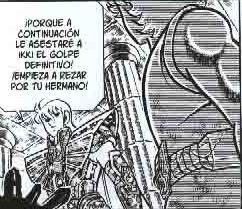 NOTA: Este es un texto complementario. Donde se trata de desarrollar más a fondo algunas de las cuestiones que plantea el artículo y otras que son necesarias para su entendimiento. Breve y sencilla reseña que muestra efectivamente, que -la detención del corazón- es el último paso del Tesoro del Cielo. Aquí, Shaka (quien ya le había sacado 5 sentidos), dice que aplicará el golpe definitivo. No dice de que se trata. Pero este no llega a concretarse porque Ikki, lo obstruye con su 6to sentido. Entonces a Shaka no le queda más remedio que anularle el sistema nervioso también.
