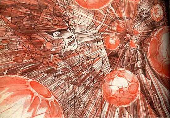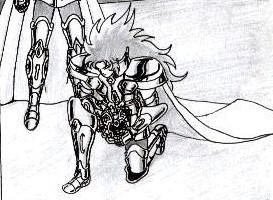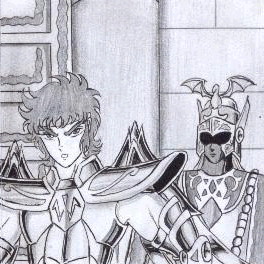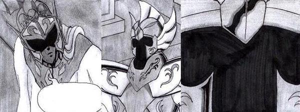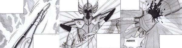 "Hmm...". en la mente de Shura, ve los misteriosos ojos de Saga. Mientras piensa sobre esto, otra vez, siente un Cosmo retador de alguna parte.