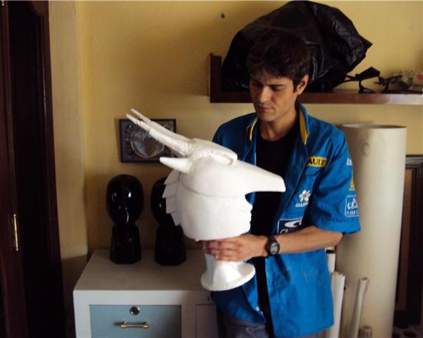 a la formula 1 aparte de Saint Seiya, cascos de piloto esculpidos en