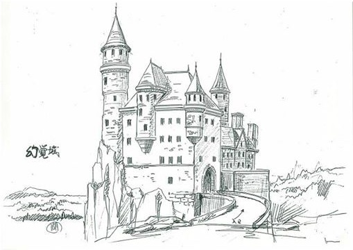 El castillo es de concepción medieval europea clásica y no muestra particularidades especiales ni dentro ni fuera, tiene grandes muros, está muy fortificado y se sitúa en lo alto de una cumbre o monte para ser menos accesible al enemigo. Posee varias torres y almenas e innumerables ventanas por todas sus caras. Tras pasar la típica puerta medieval situada tras un gran foso, Seiya accede al interior del castillo. De hecho, el anime nos muestra sólo una parte del castillo, aquella en la que Geist se encuentra con la máscara de oro.