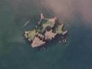 Pegaso abandona el castillo coincidiendo curiosamente con la salida del sol que nos deja ver el castillo con un bonito color blanco y toda la isla bien iluminada.