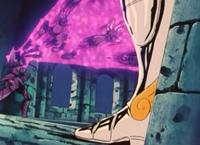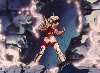 Lo peor está por llegar. Con su rival en el suelo, boca abajo y atontada por el golpe, Seiya se lanza al más vergonzoso de los ataques que se han visto jamás en la serie: usa los Meteoros de Pegaso contra un adversario en situación de indefensión. Ni siquiera los más villanos se han atrevido a caer tan bajo.