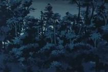 La isla acoge un denso bosque-selva, llamado "bosque de las sombras", donde viven muchos murciélagos sedientos de sangre que atacan a cualquier intruso. El bosque es atravesado por un río largo en el que los abyss saints pueden ocultarse fácilmente, ideal para las emboscadas. Los caballeros de bronce son atacados por bandadas de murciélagos, siendo Shiryu el más afectado por las picaduras. Shun y Seiya avanzan juntos por el río hasta se planta frente a ellos el caballero-espectro de la medusa, que derrotan conjuntamente, quedándose pero atrás Shun, afectado por las descargas eléctricas de su adversario. Seiya consigue salir ileso de los combates y se dirige solo al castillo de la isla. Kyūketsu Kōmori. 吸血蝙蝠 → (きゅうけつこうもり) “Muerciélago Chupasangre”. Habitan en la isla Espectro.