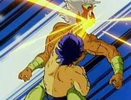 Aunque Esmeralda era su hija, el maestro de Ikki no muestra dolor por su muerte y la desprecia, imputa a Ikki su muerte, por haber retenido su puño instantes antes y no haberle matado. Ikki se enfurece y ataca con cólera a su maestro, elevando su cosmos hasta el punto de entrar en conexión con la armadura de bronce del Ave Fénix. Así Ikki mató impúnemente a su maestro y vió recompensados sus años de preparación llevando en sus hombros la legendaria cloth inmortal. El entrenamiento en DeathQueen aniquiló toda la bondad en el corazón de Ikki, volviéndolo un hombre dominado por el odio. Guilty muere satisfecho por haber despertado el odio de Ikki.