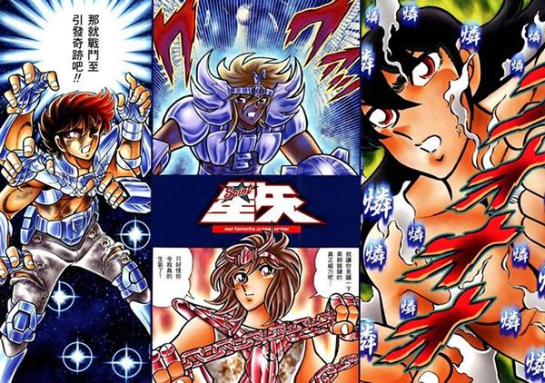 hay dos pasajes en color, Tengan en cuenta que el coloreado digital de los esquemas de ensamblaje de las armaduras y personajes en la edición japonesa del manga kanzenban se hizo sin la supervisión de Kurumada, por eso muchos colores no coinciden con el manga clásico.