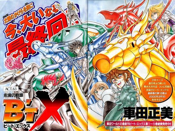 LE SCRIBE DU SANCTUAIRE ( más info ) El fracaso de Silent Khnigt Shô y su paso rápido por Super Jump llevarán a Kurumada a buscar una solución para reencontrar el éxito del pasado. Este se pondrá en contacto con la editorial Kadokawa Shoten que quiere lanzar una nueva revista mensual. El manga-ka parece estar perdiendo la inspiración, mas la idea de un amigo le permite crear un manga bastante innovador titulado "B't X", obra de su renacimiento, que contiene en sí muchos elementos relacionados com la robótica. Kurumada comprende que llega el momento de su resurgir, debe cambiar su registro y sin renunciar a sus amadas armaduras, dirige su interés hacia un mundo hipermecanizado y robótico. Así es como nació B'T X en 1994 en la revista Shonen Ace.