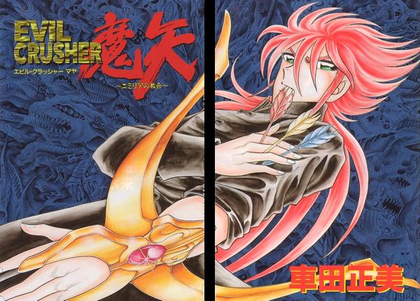 Para celebrar sus 23 años de carrera, Kurumada lanzará una historia inédita, Evil Crusher Maya, en dos capítulos publicados en Shonen Gangan, la revista mensual de la editorial Square Enix, en los números 2 y 3 de 1996, así como un Art Book (libro de arte), Burning Blood, editado por Kadokawa que reune las ilustraciones más bellas del mangaka. Evil Crusher Maya (Maya, Exterminador de demonios) es una historia corta de Masami Kurumada, comenzó y terminó en 1996 en la revista Monthly Shonen Gangan de la editorial Enix, paralelamente a la serialización de B't X en la revista Monthly Shonen Ace de la editorial Kadokawa Shoten. El manga se compone de un tomo único (unitario), dividido en dos capítulos, prólogo y epílogo, que son: "El Guerrero que vino del País de la Oscura Noche" y "Starlight Bow". Evil Crusher Maya representa un viaje de Kurumada en un mundo que no es el suyo, donde los hombres se enfrentan a los demonios. Esta historia corta llevó el subtítulo Emiria no Kyoukai / La iglesia de Emiria, pero no sabemos si Kurumada tenía más planes para Maya. Eso es algo triste, ya que de todos los short story & one-shot que él hizo, Evil Crusher Maya tenía probablemente el mejor potencial para ser otra gran serie. Hecho en un solo volumen, publicado por Shueisha, contiene una historia bastante original y de alta realización gráfica, nacida en un corto período de tiempo y que presenta los personajes de forma intensa. Pero no sólo eso, Maya es diferente de sus predecesores desde muchos puntos de vista. Falta la clásica gran organización, no existe ninguna estructura de capítulos cada vez que ve al protagonista para hacer frente a los enemigos y nunca hay una sensación de que Maya podría perder frente a sus rivales. Es difícil de imaginar la trama, atípica para el autor, hubiera sido interesante una evolución prolongada, pero a medida que la historia alcanza cierto nivel es una pena que se acabe con tanta rapidez.