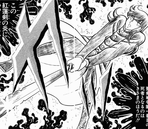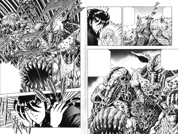 En fin, Kurumada maneja ya algunos momentos de emoción, pero aun muy lejos de la intensidad de aquellos de su futura obra maestra. Tenemos incluso la ocasión de ver morir a todos los héroes y de verlos regresar en el volumen siguiente después de usar la técnica del famoso Misopetha-Menos (vaya, vaya). También en esta obra Kurumada hará sus primeros retoques en el dibujo para llegar a su mejor nivel en medio de Saint Seiya.