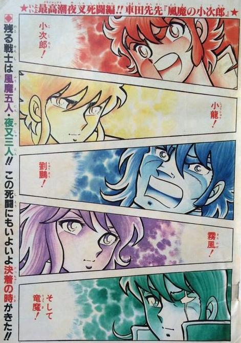 Fuma no Kojiro es un manga iniciado en 1982 en el número doble 03-04 de la revista. Para este trabajo, tomó los cimientos de su exitoso manga desplazando los enfrentamientos del ring de boxeo a combates entre diferentes ninjas. El manga terminó en 1983 con cierta popularidad ya que se ubicó en el primer lugar de la clasificación anual de 1982 (según un cálculo sobre el promedio de las clasificaciones de la serie en la revista). Fuma no Kojiro es una prueba de que después de Ring ni Kakero la carrera del mangaka Masami Kurumada ya había tomado un curso bien definido, a partir del cual era impensable volver. Las historias de Kurumada incluirán golpes secretos, luchas a muerte, luchadores leales e implacables así como diferentes situaciones misteriosas que revelan informaciones sorprendentes a medida que la trama avanza. Este manga, de hecho, se desarrolla originalmente a nivel escolar (como ya sucedió con Ring ni Kakero) y la idea original del autor parece plantear un desafío entre escuelas donde apenas hay dos personajes principales de gran carisma y honor, que están destinados a desafiar el espíritu de los samuráis japoneses (no es coincidencia que los nombres de Kojiro y Musashi se refieran a dos de los más famosos samurai rivales de la tradición japonesa). El manga sigue girando entorno a Kojiro y Musashi, hasta lo que parece ser su conclusión natural (capítulo 30, el último de la saga de las Espadas Sagradas), pero alrededor Kurumada desarrolla una serie de personajes muy interesantes, centrándose sobre ellos y el origen / secreto de las técnicas secretas, presentes sólo en la primera saga. Es una historia de acción con encuentros y enfrentamientos entre bandas de jóvenes que luchan por la obtención de poderes paranormales, comienza con una rivalidad de dos clanes, que luego se convierte en una verdadera batalla de guerreros equipados con poderes especiales. Cuenta la historia del clan de ninjas Fuuma (espíritus de viento) cuya personaje principal, Kojiro, es uno de sus miembros. La obra logró un éxito relativo (aunque nunca a la altura de Ring ni Kakero). En 2003 Kurumada obtuvo un renacimiento en la revista Champion Red.