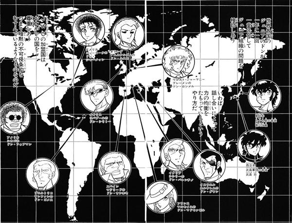 Los Dons de la JWC no están tan estereotipados como los campeones internacionales de boxeo Jr. de RnK, pero son una letanía de referencias a personas reales, incluso algunas de sus características físicas coinciden con las personas que hacen referencia. El líder aparente es Jermaine, Don de Nueva York, quien intenta mantener a Sho calmado cuando se le dice que Foreman, Don de Chicago, ya ha enviado algunas fuerzas a su país en una escaramuza inicial. Pensaron que Japón Oriental no tendría Don. Realmente, lo más interesante acerca de los Don de la JWC es simplemente tratar de adivinar a quien hacen referencia. Tenemos Don (George) Foreman y Jermaine (Jackson) de América, (Moshe) Dayan de Israel, (Wim) Ruska de los Países Bajos, (Wilfredo) Goméz de Puerto Rico, y (Erwin) Rommel de Alemania Occidental. También tenemos a Don Sillitoe de Inglaterra (que se refiere al director general del MI5 Percy Sillitoe o el famoso autor Alan Sillitoe), Valentino de Italia (probablemente una referencia al legendario Rodolfo Valentino), San José de España y la femenina señorita Mademoiselle de Francia. Finalmente, las fuerzas de Foreman incluyen a (Joe) Frazier, (Ken) Norton & Tito y La Toya (Jackson). Realmente uno tiene la sensación de que Kurumada se lo paso muy bien conceptualizando estos Dons y a quien iba a hacer referencia en cada uno de ellos.