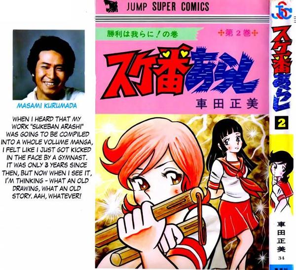 Se trata de la primera obra / manga de Masami Kurumada a nivel profesional (su debut como mangaka), que fue una historia corta publicada por la editorial Shueisha en el volumen 33 de la revista Weekly Shonen Jump. Tuvo éxito, por lo que el mangaka reescribió una segunda historia corta en la revista 35. Después de eso, Shueisha le dió luz verde para lanzar su trabajo. Sukeban Arashi comenzará en el volumen 39 de la Weekly Shonen Jump de 1974 y acabará cuatro números más tarde. Aún así, este no es el final del manga ya que Kurumada recuperará a su heroína varias revistas más adelante; en 1975, en el número 22. El final de este primer manga se producirá realmente veinte números después. Sukeban Arashi / Delinquent Storm es una serie comedia. Cuenta la historia de una chica llamada Rei Kojinyama y sus problemas, se trata de una chica especial que se comporta como un chico y maneja nunchakus, ella trata de ser una colegiala ideal para honrar la memoria de su difunta madre, pero no puede evitar volver a su estilo de vida gamberro y “delictivo”. Es una historia de amor, de acción y de juventud, sin embargo, no tuvo una buena acogida, pero sería el comienzo de su colaboración con esta editora. Con este trabajo, optó por dibujar un héroe / protagonista femenino con el fin de desmarcase de los otros mangas que aparecieron en la revista. En cuanto a la creación de su historia, se inspiró en los pasajes más llamativos de las obras de Motomiya, agregando un toque de belleza para que el manga complaciera / agradara tanto a las niñas como a los niños. Sukeban Arashi era un manga de "banchôs" (“jefe de banda”), dividido en 16 capítulos, se trata de una historia de estudiantes y delincuentes o fuera de la ley. Sukeban (スケバン/女番/スケ番) significa “niña delincuente” o “niña jefe” en japonés, lo que equivale al Bancho masculino. Un diccionario de argot japonés dice que sukeban sólo se refiere al líder de una banda de chicas, no a un miembro de la banda de chicas.
