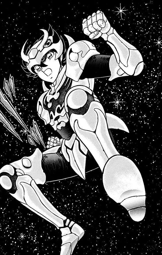 Saint Seiya es la obra más famosa de Kurumada, sobre todo fuera de Japón, y, ciertamente, aquella que tuvo mayor tirada comercial. Saint Seiya fue el resultado de una compleja y terriblemente irregular carrera como la de Masami Kurumada, que alternó éxitos clamorosos como Ring ni Kakero (uno de los cómics más vendidos de la década de los setenta, que versaba sobre el boxeo desde un punto de vista fantasioso) o el más discreto Fuuma no Kojiro (historia de fantasía y artes marciales), con otros estrepitosos fracasos como Otoko Zaka que incluso fueron cancelados. Saint Seiya se trataba en realidad de un híbrido entre sus trabajos más relevantes. La editorial Shounen Jump apostó por su nuevo trabajo que comenzó a publicarse en sus páginas en enero de 1986 y que a la postre se materializaría en 28 tomos. Aunque no es difícil de probar que no confiaba demasiado en sus posibilidades. En la mitología griega, jóvenes muchachos protegieron a la diosa Atenea. Llamados los Sagrados Saints (Caballeros) de Atenea, se dice que con sus manos podían perforar el cielo y con sus pies abrir la tierra. En la actualidad, la trama sigue las aventuras de Seiya, Shun, Ikki, Hyoga y Shiryu, cinco adolescentes japoneses que se convierten en Saints de Atenea para proteger a la Tierra de las amenazas que pesan sobre ella. Al comienzo del concepto, Saint Seiya era un simple manga de karate donde los protagonistas estarían equipados con una fuerza capaz de lanzar chispas. Luego fueron vestidos con armaduras (cloths) porque el cuerpo humano era demasiado frágil para tales daños. Así es como Kurumada comenzó el nuevo manga. Pero no fue hasta después de muchas reuniones y reflexiones, que Saint Seiya finalmente fue lanzado en el número 01 de la revista Wekkly Shonen Jump de 1986 tal como lo conocemos. El manga siguió su camino durante varios años con, por primera vez en una obra de Kurumada, productos derivados, como una adaptación animada, videojuegos, una comedia musical y especialmente una gama de juguetes articulados. Seiya es un niño huérfano al que separaron desde muy joven de su hermana y sometieron a un duro entrenamiento, primero en Japón, de donde era originario, y más tarde en Grecia, donde peleará duramente para conseguir el Cloth (nombre literal que se les daba a las armaduras en su edición original) de Pegaso que lo acredite como Saint (“Santo”) de Atenea, condición que su “benefactor” Mitsumasa Kido le había impuesto para reencontrarse con la única familia que le quedaba en el mundo. Pero al regresar a Japón con la armadura y el título de Bronze Saint para ajustar cuentas, el hombre al que busca ha fallecido y su nieta, Saori, ha organizado un torneo entre todos los muchachos que, como él, han alcanzado el rango de Saints (posteriormente traducido como “caballeros”). Una competición que dará al ganador el derecho a ser el portador de un “Gold Cloth” especial (hecha de oro) y cuya forma parece representar a la constelación de Sagitario, a la par que dota a su portador de un arco como arma. A pesar del número inicial de diez Bronze Saints, cinco terminarán por ser los principales que protejan a Saori. A su vez, todos ellos tendrían poderes asociables fundamentalmente a animales, a los que les acompañaría un color. Seiya era el Bronze Saint de Pegaso y su aura era blanca con vestimenta roja (la de los líderes), Shiryu, el Bronze Saint de Dragón, tenía un espíritu verde, Hyoga, el Bronze Saint de Cisne, era blanco con traje azul, Shun, Bronze Saint de Andrómeda, Rosa (debido a su constelación femenina) e Ikki, Bronze Saint de Fénix, hacía gala de un fondo anaranjado que simulaba el fuego, correspondiente con su alma Tsundere (término que describe a una persona cuyo comportamiento es frío, hóstil, violento y reservado hacia los demás, pero que después de un tiempo muestra su lado cálido, sensible y amigable). Saint Seiya (conocida en la comunidad hispanoparlante como "Los Caballeros del Zodiaco") consta de 3 partes claramente diferenciadas: La saga del Santuario, la saga de Poseidón y la saga de Hades. El manga sería editado en anime entre 1986 y 1989 con una teleserie de 114 capítulos, incluyendo una parte inédita e inexistente en el manga, la saga de Asgard, basada en el capitulo del manga sobre Hyoga en el país de los hielos, 4 películas derivadas y 13 OVAS para la saga de Hades. El diseño de personajes corrió a cargo de Shingo Araki y Michi Himeno. La obra termina en 1991, tras 5 años y 28 volúmenes tankobon. Como se precisó anteriormente, esta serie se sustentó casi exclusivamente con el artificio del "Saint Teko". Comienza con la Guerra Galáctica, después de la lucha contra los Black Saints, a continuación, contra algunos Silver Saints en secuencia, hasta las 12 casas, a continuación, Poseidón y después Hades. En serio... esta serie casi no se detuvo por un segundo ni dejo que los protagonistas respiraran!. Sin embargo, por más que el "Saint Teko" fue efectivo que no duró para siempre. Saint Seiya fue cancelado (sí, CANCELADO, no concluyó!) en la revista Shonen Jump en 1991. Lo que realmente mantuvo viva la serie en las páginas de Jump fue su adaptación animada. El anime que salió en 1986 y que se hizo magistralmente - especialmente con la dirección artística de Shingo Araki. De hecho, la obra animada ayudó a ocultar algunos defectos de la trama original, mejorando y mucho varias peleas del manga, y dio a los Saints algunos unos momentos de "relajación", especialmente en la etapa previa a las doce casas, lo que ayudó a diferenciar mejor sus personalidades y humanizarlos un poco.