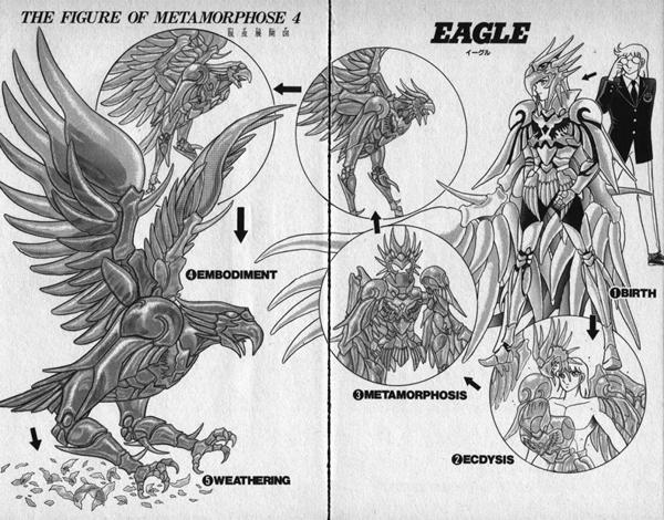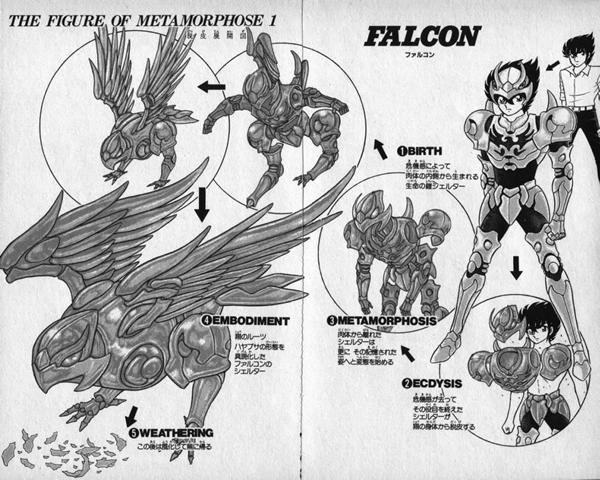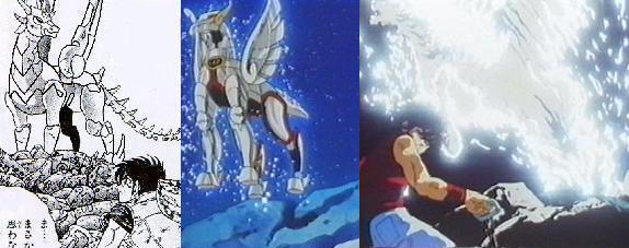 Se puede afirmar, sin temor a equivocarse, que si esta historia de manga llegó a convertirse en animación, fue por una puntual innovación: el ingenioso diseño de las armaduras. Los productores de Toei Animation y la compañía juguetera Bandai entendieron eso y explotaron el tema de las armaduras. En el manga, cada personaje se pone la armadura a mano. En el anime, las piezas / corazas flotan con magia y se ensamblan en el cuerpo del luchador. Para Kuramada, la armadura era un complemento divertido; para los animadores que tradujeron su creación, era el todo. Fue por ello, que para el anime se realizó una re concepción del diseño de armaduras, la cual hacía más visual la serie. Parecía que sobre el papel Kurumada primero dibujaba los trajes metálicos y luego les ponía cabeza y manos a los individuos. El caso es que cuando provees a tus personajes de trajes llenos de pliegues, les dificultas / imposibilitas el movimiento, gran dilema en un historia donde la pelea y el combate es el eje central. Por el anime, pasaron varios dibujantes, uno de ellos Shingo Araki, el único artista que comprendió la importancia de los movimientos corporales de los personajes. Podemos concluir, sin exagerar, que es por él que el anime fue un éxito. Para Araki es importante el contorno del cuerpo y el traje es simplemente algo que se ciñe a este. Araki es un maestro en darle a la figura humana el protagonismo, no importa si el traje que usa un personaje es majestuoso.