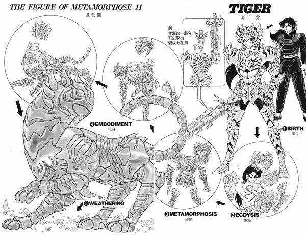 El personaje protagonista Zaji, quien se asemeja psicológica y físicamente a Seiya e Ikki, por un lado encarna el prototipo de Seiya, se ve obligado por las circunstancias a luchar contra sus compañeros cyborgs, y es un tipo duro e impasible, un lobo solitario que actúa por la justicia como Ikki. Físicamente Zaji es un extraño joven cuyas pupilas son del color de un lago tranquilo, se caracteriza por llevar una cicatriz debajo del ojo izquierdo y una enorme cicatriz de color rojo sangre en forma de rayo en la espalda, posee una mirada fría y su principal debilidad es su bondad, suele actuar por la justicia. Zaji se escapa inconscientemente de la misteriosa organización "Home" (''La Casa'', "la tumba blanca", una sociedad secreta que posee enormes recursos y acceso a la más avanzada tecnologia, la cual se dedica a crear androides con poderes extraños para que se conviertan en asesinos a sueldo o sicarios), e inicia un viaje solo hasta el fin del mundo con un extraño objetivo: encontrar a su madre a la que nunca ha visto en persona. Inicialmente no sabía quienes eran sus padres pero accidentalmente pudo descubrir sus orígenes.
