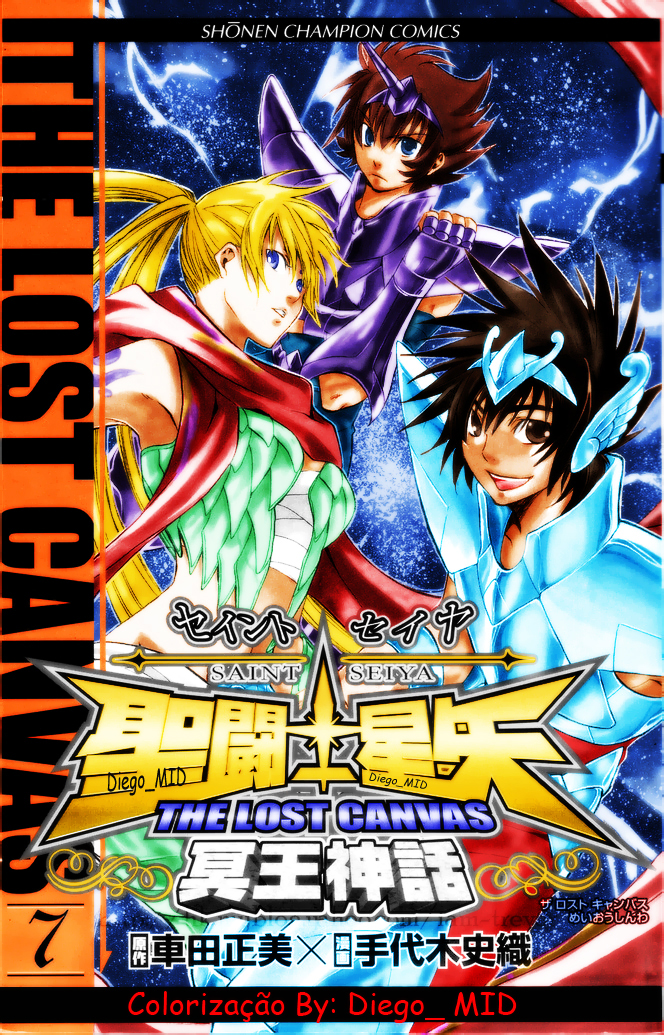 Sobre el guión, es difícil darle mucha participación a Kurumada en este título ... A primera vista podemos sentirnos decepcionados, el héroe vuelve a ser un Bronze Saint de Pegaso (como si no tuvieramos bastante ya), se llama Tenma y parece tener el mismo caràcter que Seiya, aunque se da cierto protagonismo a Yato de Unicornio y a otros personajes inéditos. Los Gold Saints y Specters tienen el mismo aspecto físico que sus sucesores siglos después. Lo que parece indicar que la autora no ha osado diferenciarse de la primera obra. La batalla se centra en la relación entre los 3 huérfanos protagonistas, Sasha (reencarnación de Atenea), Tenma (el elegido para vestir la armadura de Pegaso) y Aaron (o Alone, que significa "solitario" en inglés, dada la personalidad del joven, reencarnación de Hades en esta era), su mejor amigo, ambos crean un vínculo de amistad. Tenma es un descarado de gran corazón y Alone un artista pintor que lleva generalmente prendas de vestir eclesiásticas. Ambos tienen un destino excepcional ya que Tenma debe convertirse en el nuevo caballero de Pegaso y Alone en la reencarnación del dios Hades en esta era, por lo que la amistad de dos jóvenes muchachos está condenada a romperse. Sasha, la reencarnación de Atenea, es hermana menor de Alone y amiga de infancia de Tenma en el Orfanato, y otros personajes principales son los Santos de oro, quienes resultan ser de aspecto idéntico al de los santos de la era moderna, en la Guerra Santa de 1990. Colorización de Niii'Link (Francia) La anterior Guerra Sagrada es datada en 1543, como afirman los gemelos de Cáncer, Sage y Hakurei, los dos únicos supervivientes del genocidio. El primer capítulo se editó en forma paralela a Next Dimension y era especialmente largo en la medida en que implicó 56 páginas. A partir del mes de octubre de 2006, las publicaciones se volvieron quincenales y la longitud de los capítulos se estabilizó a una veintena de páginas. Originariamente The Lost Canvas debía ser "paralelo" a Next Dimension (como sugerían los títulos comunes). Kurumada habría implicado a Shiori Teshirogi para producir esta historia en base a un innovador sistema de narración bautizado como 'Multi-Angle Dual', un concepto bastante confuso, sería la Primera publicación dual en la historia de StS con múltiples ángulos, para aportar nueva vida a este manga. Teshirogi aporta un enfoque femenino que da un diferente ambiente y una bonita historia de ficción... Manga de Kurumada En principio cada uno de los dos mangas debería haber narrado la historia bajo un punto de vista divergente, y cada grupo de personajes iría por un lado, ND concentrado en Shion y Dohko, junto a Tenma de Pegaso, y LC sobre Tenma y Alone por otro, dos binomios de personajes.. Haría falta que Kurumada y Shiori se pusieran de acuerdo para evitar incoherencias entre las 2 obras coexistentes, como pasa con el Episode G y el manga original.