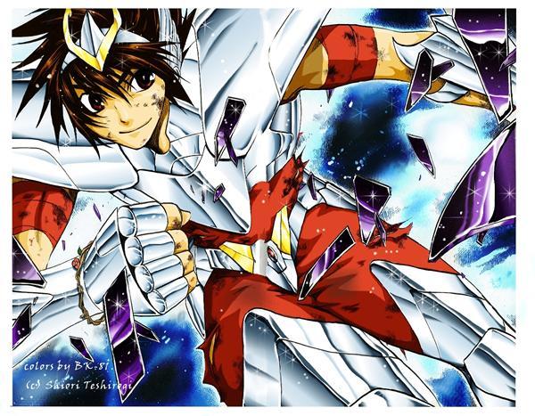 Colorización de BK-81 (Italia) A raíz de la devastación de su pueblo por el ejército de Hades, Tenma decide ir a combatir los espectros y será herido mortalmente por Alone/Hades. Gracias a una pulsera de flores que llevaba desde pequeño "bendecida" y cargada con el cosmo de Atenea que tenía en la muñeca, que la misma niña le dio tantos años atrás, aunque es asesinado por el dios, su alma será protegida en el reino de Hades: el "Meikai". Yato, caballero de Bronce del Unicornio y Yuzuriha, guerrera de Jamir (que se revelará más tarde caballero de plata de la Grulla), vendrán en su ayuda y lo traerán no sin dificultades al mundo del vivos. Al estar en Yomotsu es capturado por uno de los Espectros pero es liberado gracias a la ayuda de Yato y Yuzuriha. Juntos tienen la misión de recolectar 108 frutos del único árbol con vida en el inframundo, allí se enfrentará al caballero de Oro Asmita de Virgo en un duelo "psíquico" cuyo desenlace determinará su valor, en su lucha este le revela que es el legendario santo de Pegaso, que hirio el cuerpo de Hades. Después de que Tenma haya superado valientemente la prueba, Asmita descubre el verdadero potencial de este, que no deja de excederse. Tenma ante la desesperación de volver a ver a Sasha, logra despertar por un instante el 7° sentido destruyendo la proyección lanzada por Asmita. Regresando a Jamir, Asmita repara la armadura de Tenma, reconstruyéndola como la 3° armadura reparada por la sangre de Atenea, en la actual guerra santa. Gracias a la donación de la sangre de Asmita su armadura es reparada, este adquirirá la última evolución de la armadura de Pegaso, la misma que viste a Seiya en la parte Hades del manga de Kurumada. Tenma, Yato y Yazurhiza logran acabar con los espectros que atacan Jamir, pero al ver que son inmortales, no pueden hacer nada. Llorá y se lamenta en el sacrificio de Asmita para hacer el rosario de los 108 cuentas.