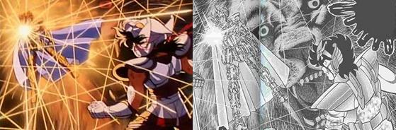 La técnica Excalibur fue ejecutada por Shiryu con el brazo izquierdo
