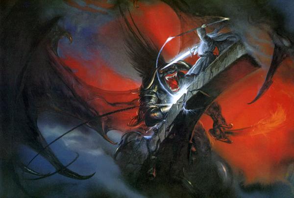 el mago Gandalf y el monstruoso Balrog de Morgoth. Bien visto por parte